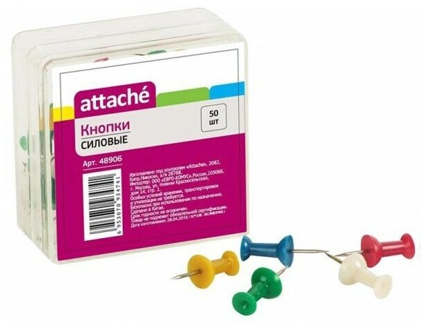 Кнопки для пробковых досок Attache силовые, 50 штук в упаковке (48906)