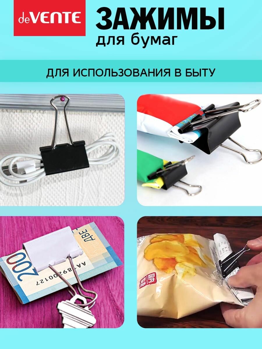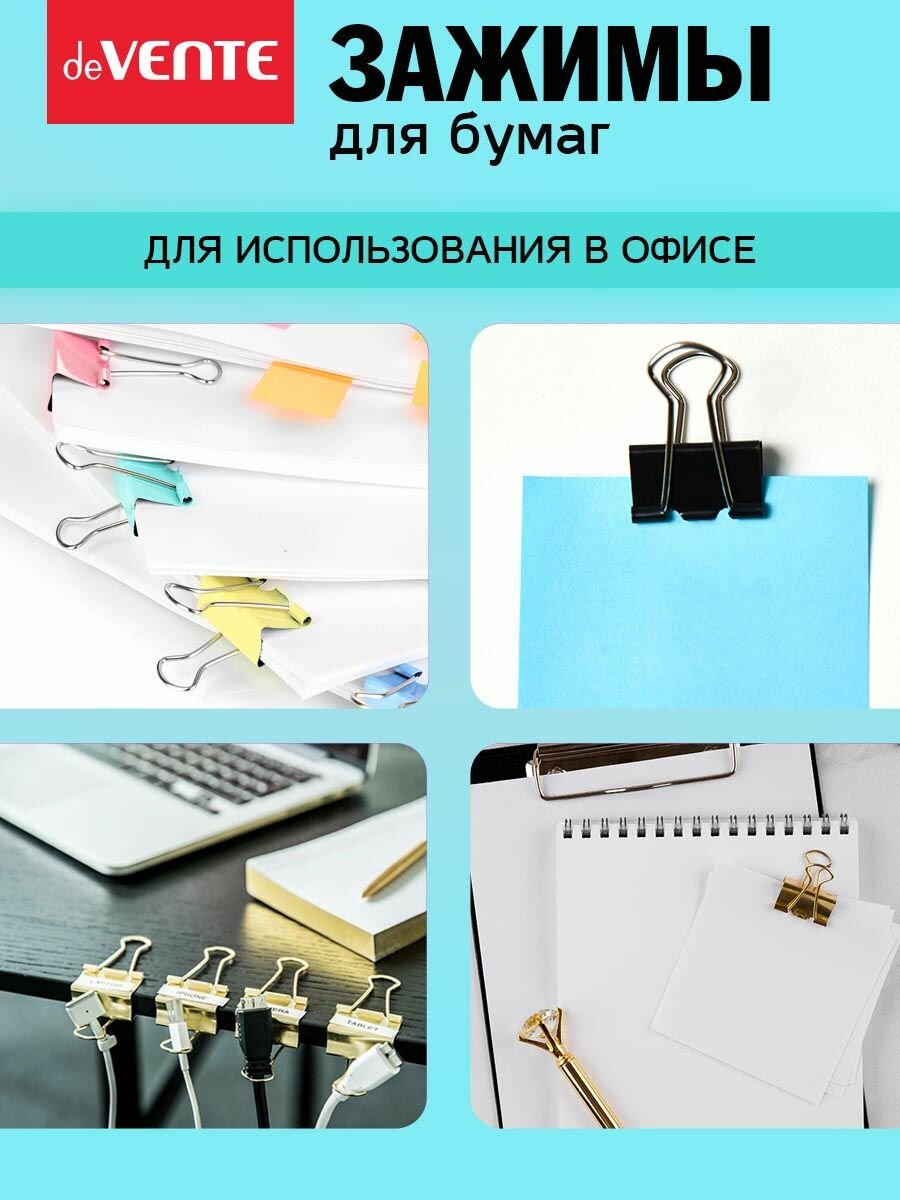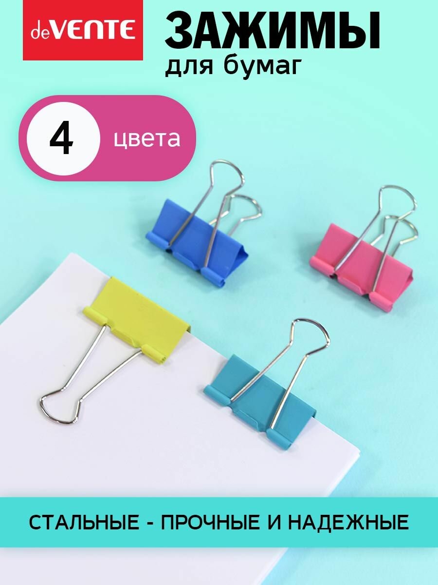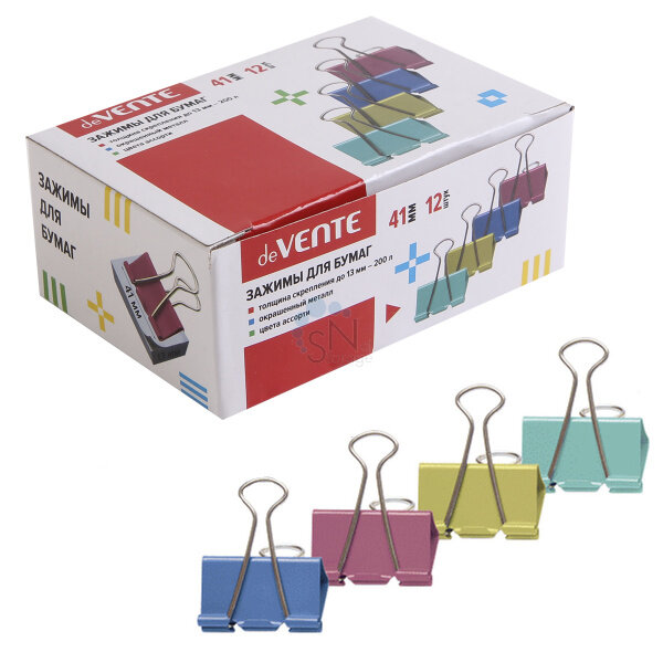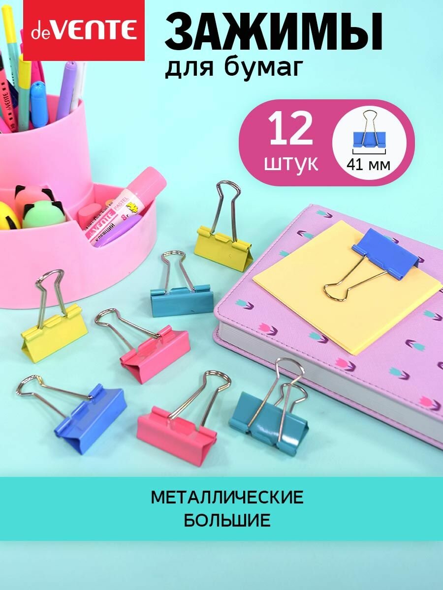 deVENTE Зажимы для бумаг 41 мм, 12 штук, deVENTE, металлические, микс х 4 цвета, картонная коробка