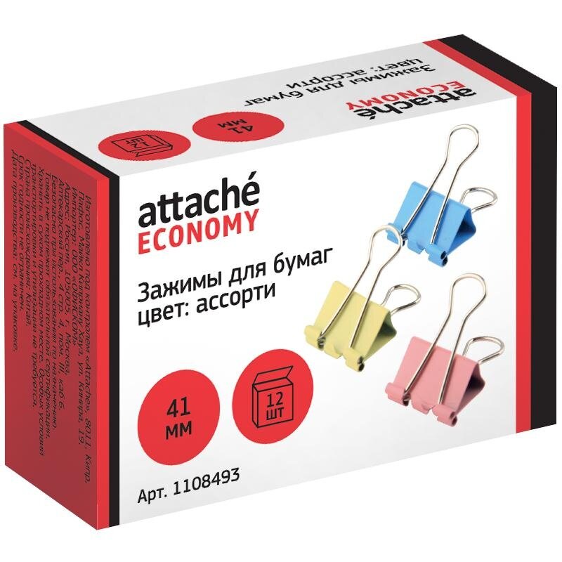 Зажимы для бумаг ATTACHE ECONOMY 41мм 12шт/уп Attache Economy, в карт,кор, цвет черный