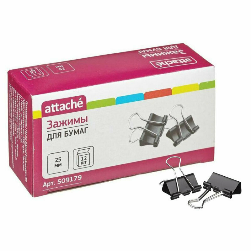 Зажимы для бумаг Attache 25 мм черные (12 штук в уп) 509179