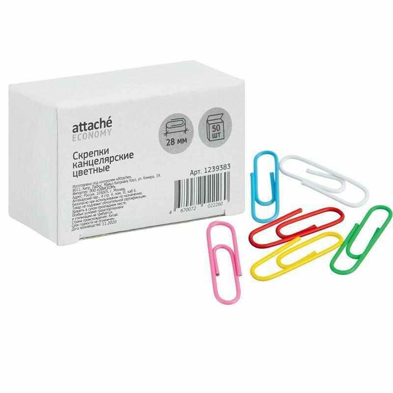 Скрепки Attache Economy (28мм, металлические с полимерным покрытием) 50шт.