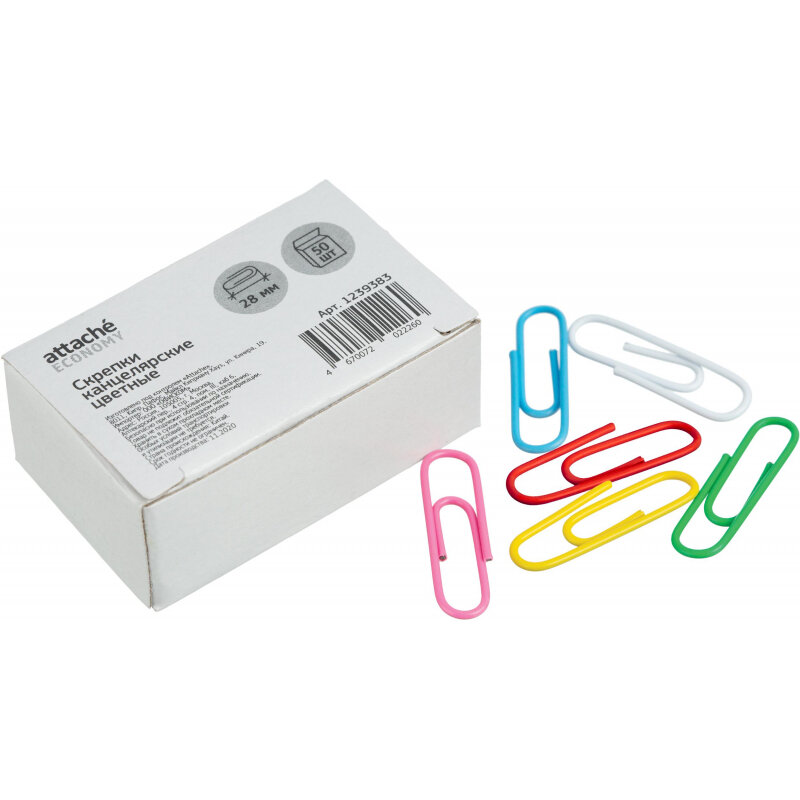 Скрепки Attache Economy полимерные негофрированные 28 мм 50 штук в упаковке, 1239383