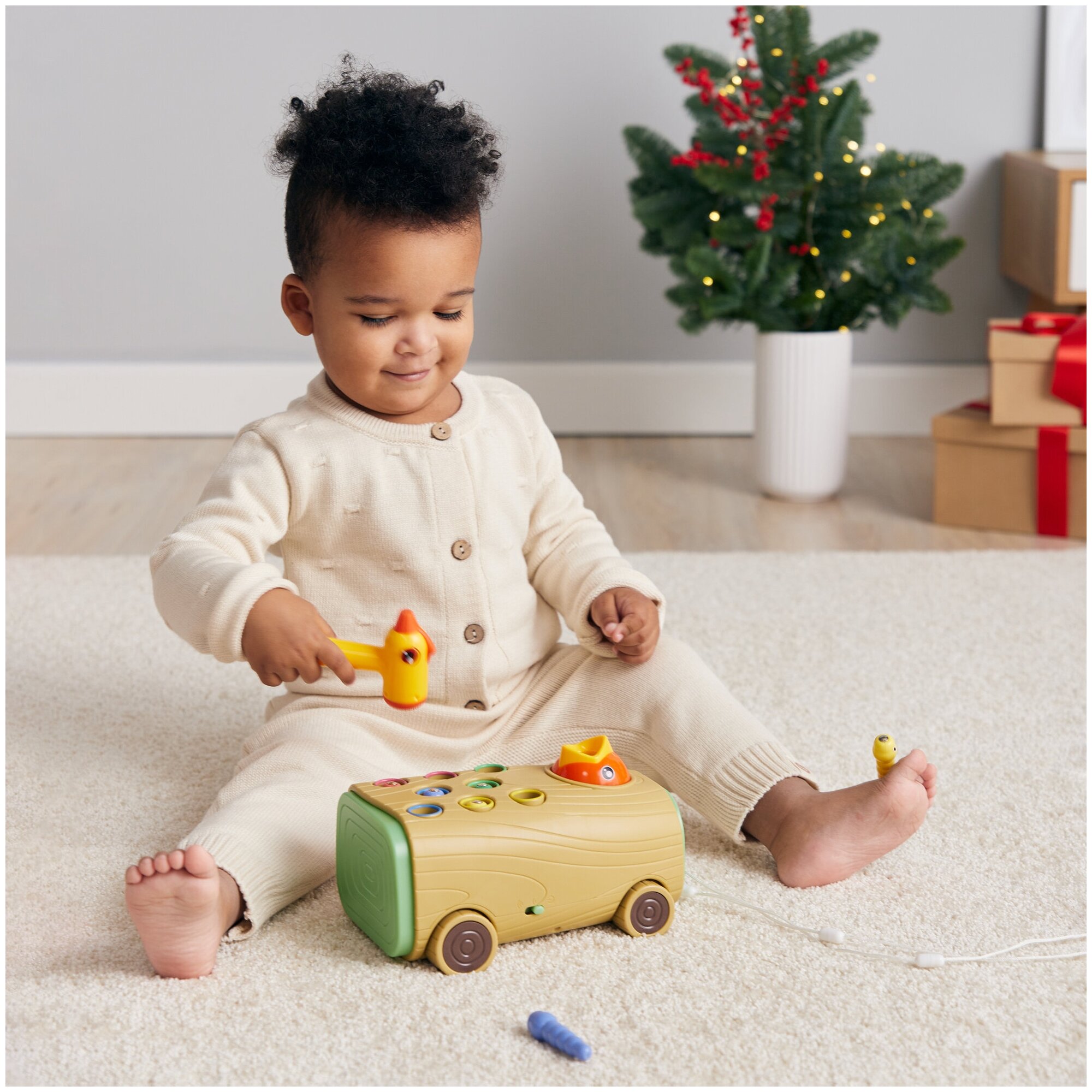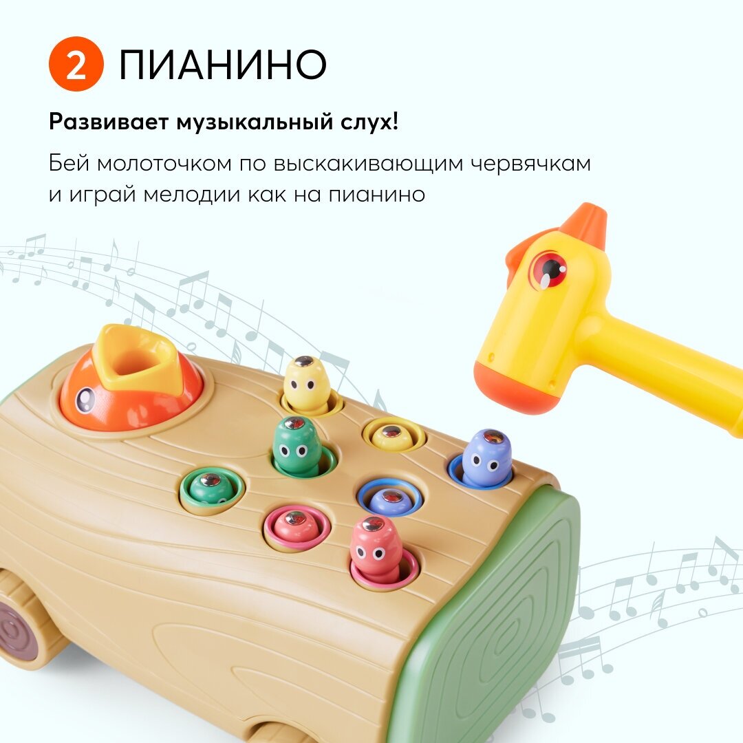 | Плюсы: | Прикольная стучалка, поет. моргает, разные цвета типа сортера, молоток с магнитом |