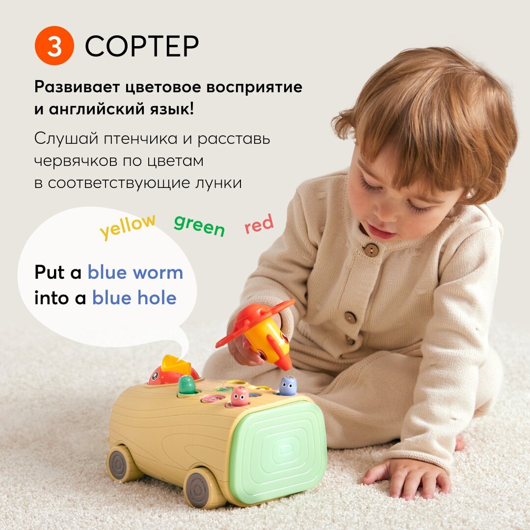 Купить Развивающая игрушка Happy Baby Hungry bird, музыкальный сортер червячки на магнитах