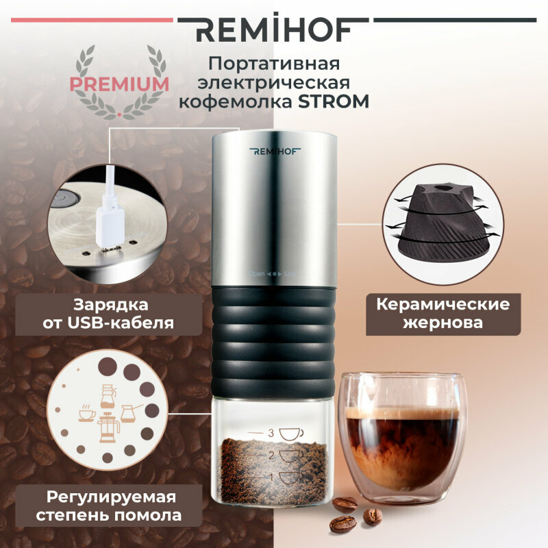 Портативная электрическая кофемолка Remihof STROM ЦБ-00000309