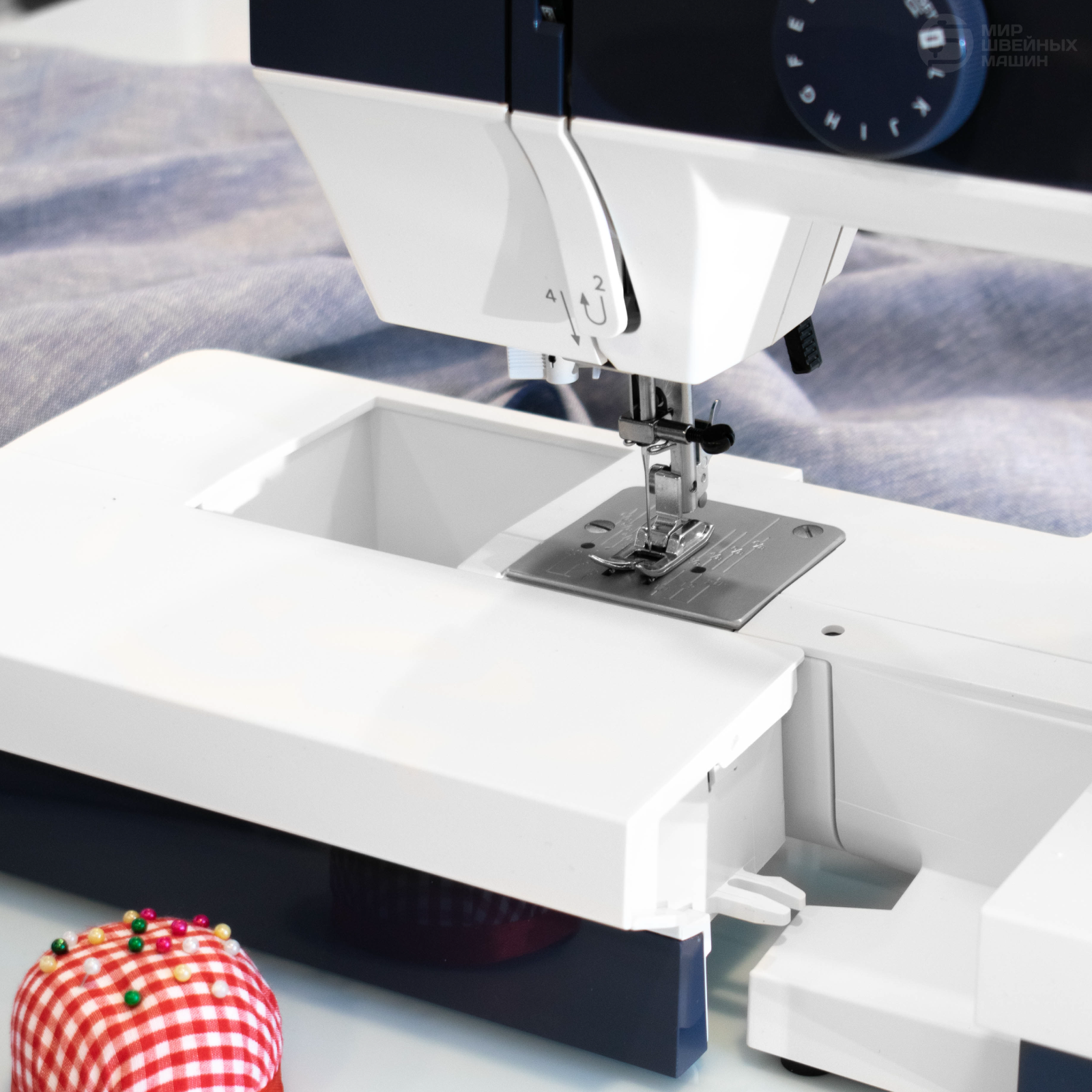 | Плюсы: | Тихий ход,работает с различными тканями, наличие нитковдевателя, оптимальный набор швов |