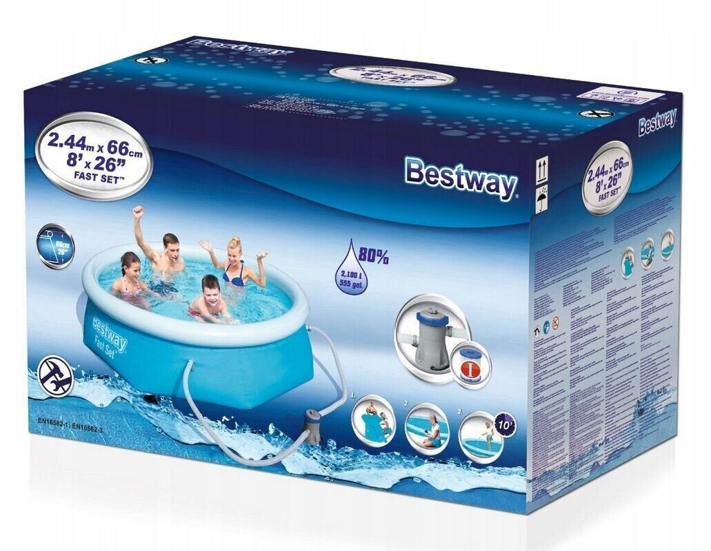 Надувной бассейн Fast Set, 244х66 см + фильтр-насос 220 В, BESTWAY (57268)