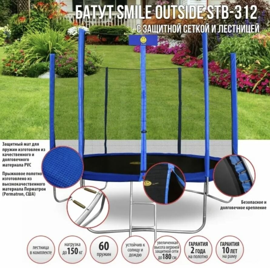 СохранитьБатут Smile outside синий 10ft с защитной сеткой и лестницей интересное: