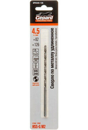 Сверло по металлу спиральное 4,5х82х126 мм GEPARD HSS-G удлиненное (GP0345-126) интересное: