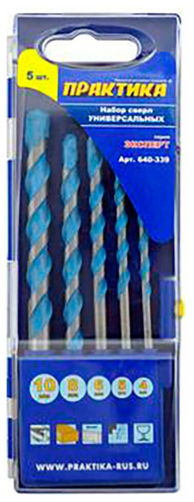 Набор сверл универсальных ПРАКТИКА Эксперт, 5 шт 4,5,6,8,10 мм, 640-339 , 1 шт.
