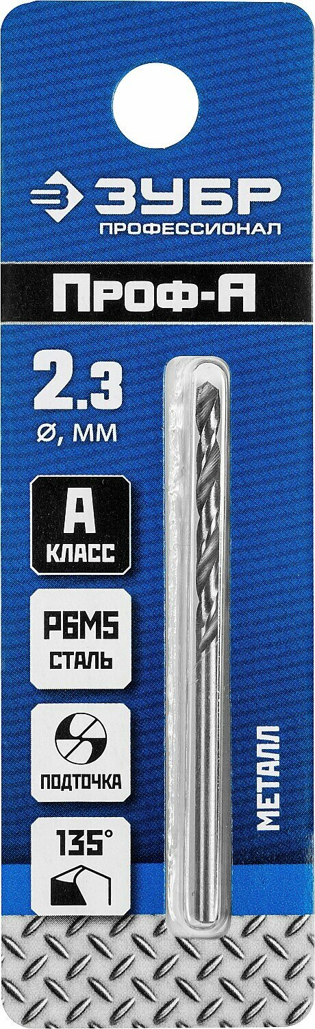 Сверло по металлу ЗУБР ПРОФ-а 2.3х53мм, сталь Р6М5, класс А