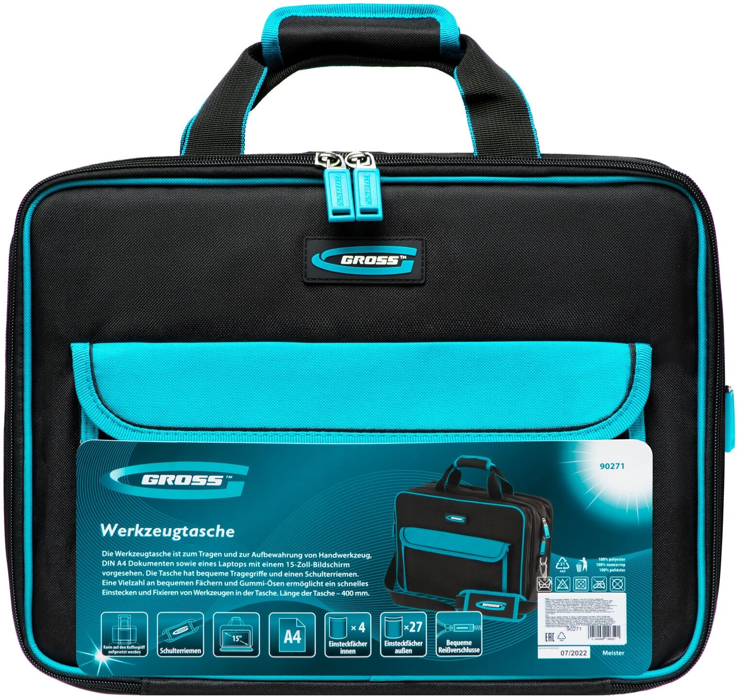 Сумка для инструмента GROSS, выдвижная рукоятка, колеса, наплечный ремень 90276