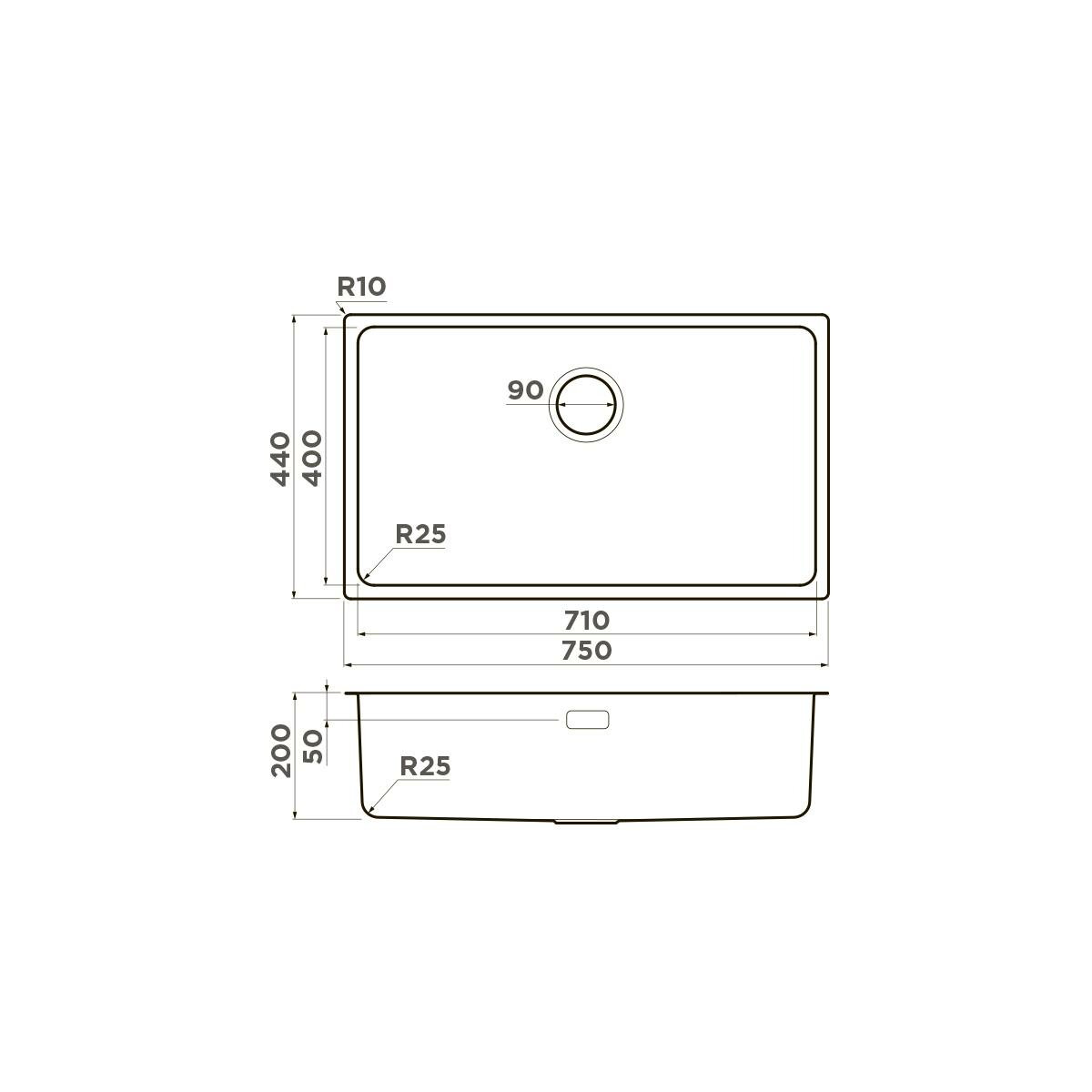 Мойка Tadzava 75-U/I-IN нерж.сталь/нержавеющая сталь