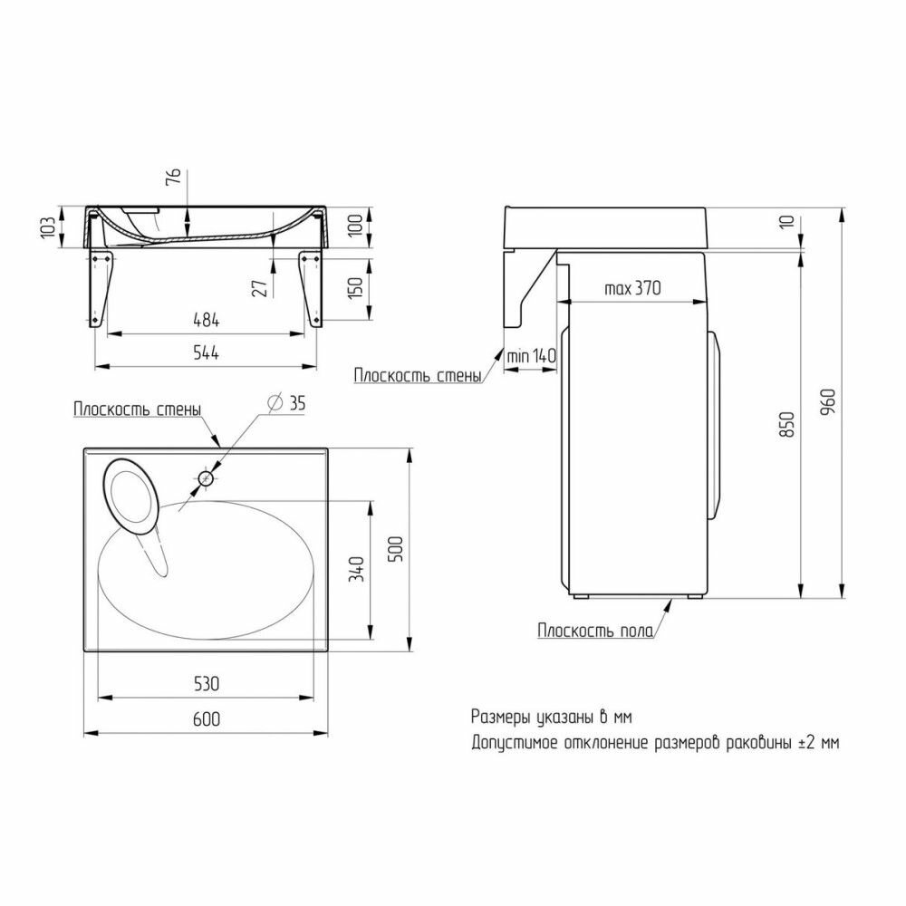 Умывальник "Paola Liguria 50" (литьевой мрамор, 600х500х96) над стиральной машиной, в комплекте кронштейны с креплением г. Ульяновск