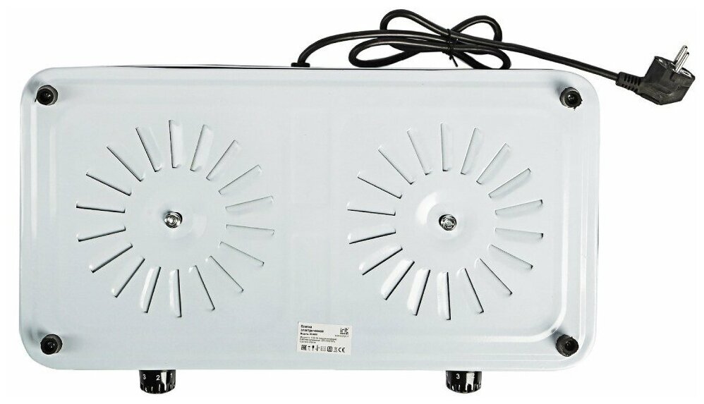Плита электрическая Irit, IR-8008, 2000 Вт, 2 конфорки, диск, эмаль, механическая, переключатель поворотный, белая