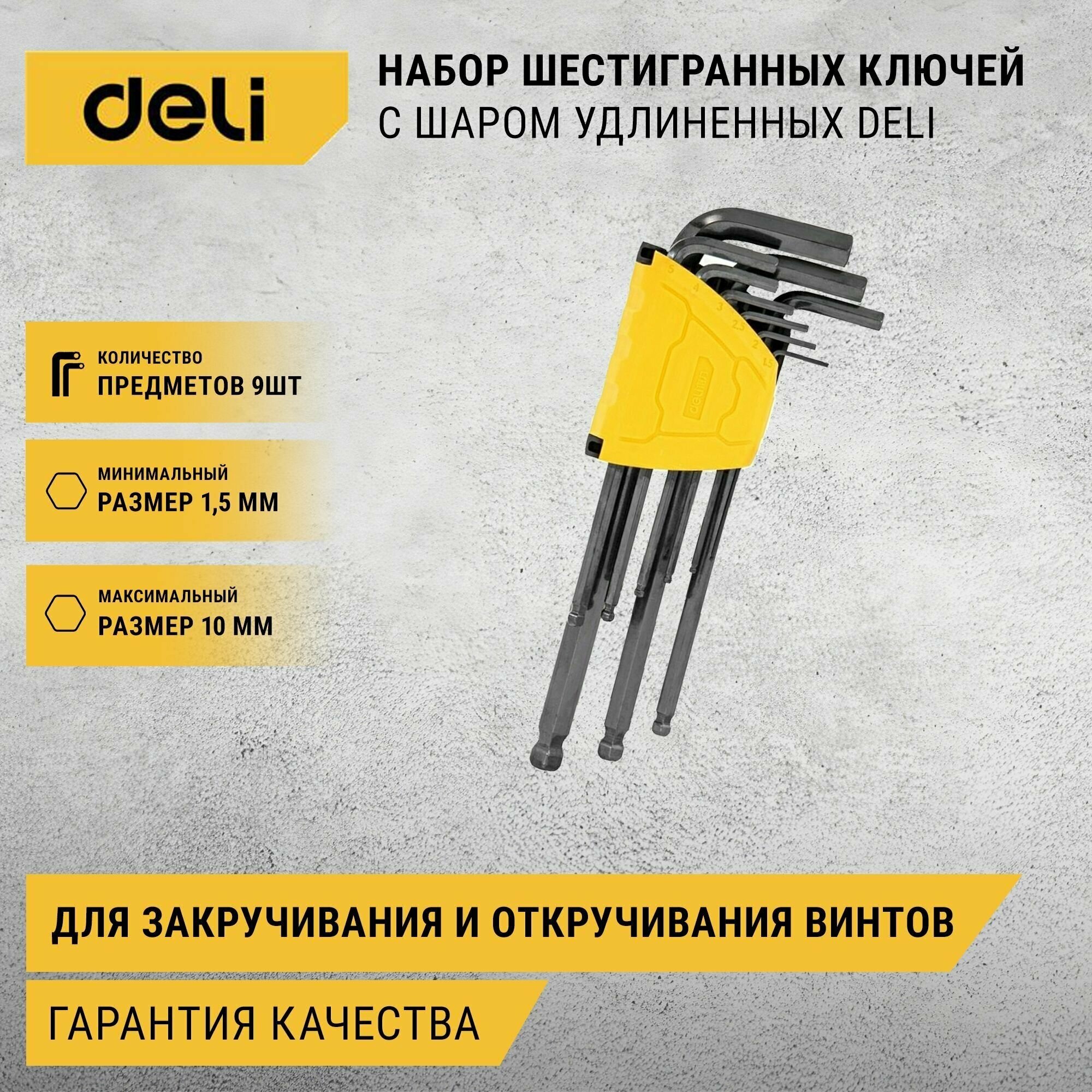 Купить Набор шестигранных ключей с шаром удлиненных Deli Dl232209h 9 шт Материал Cr-v. Спецификация: 1,5,2,