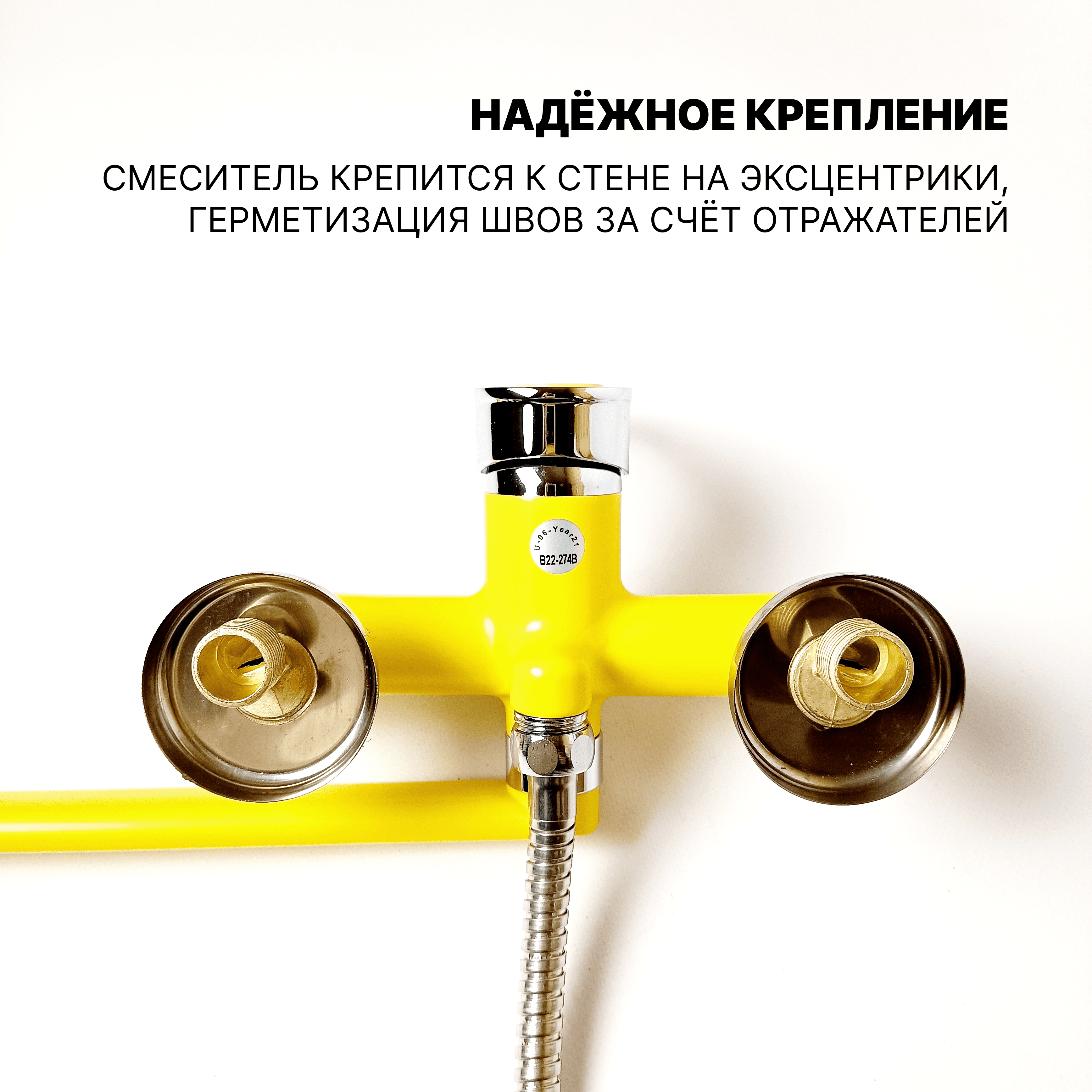 Купить Эверест Смеситель для ванны (Zn), плоский излив 350мм, кер.картр.25мм, лейка, желтый, B22-274B