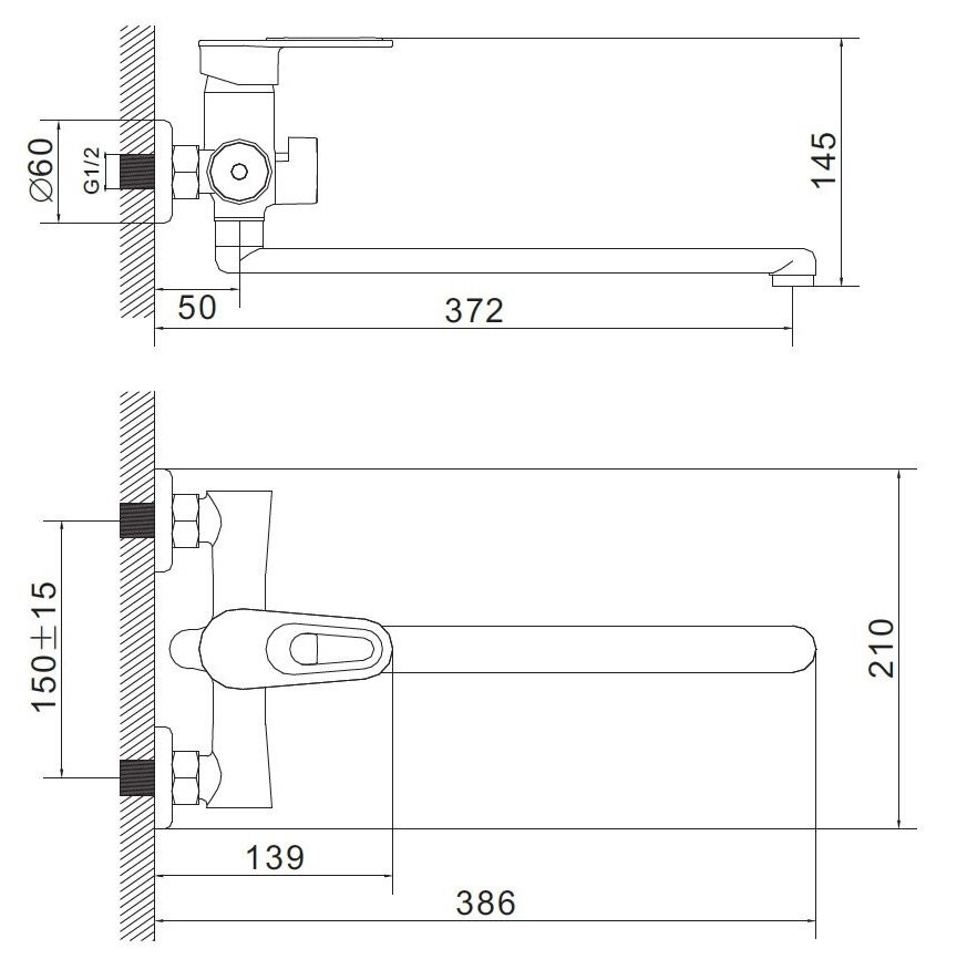 | Длина излива | 372 мм |