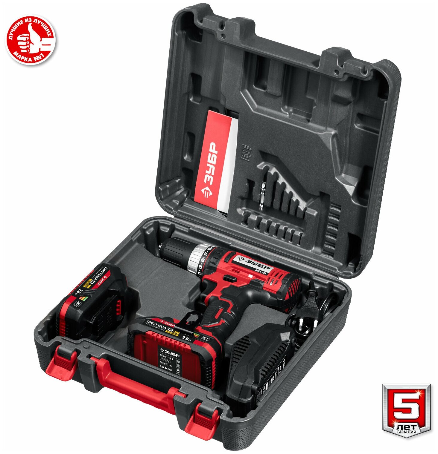 СохранитьЗУБР 18 В, 2 АКБ (2Ач), в кейсе, дрель-шуруповерт ДШЛ-185-22 Мастер интересное: