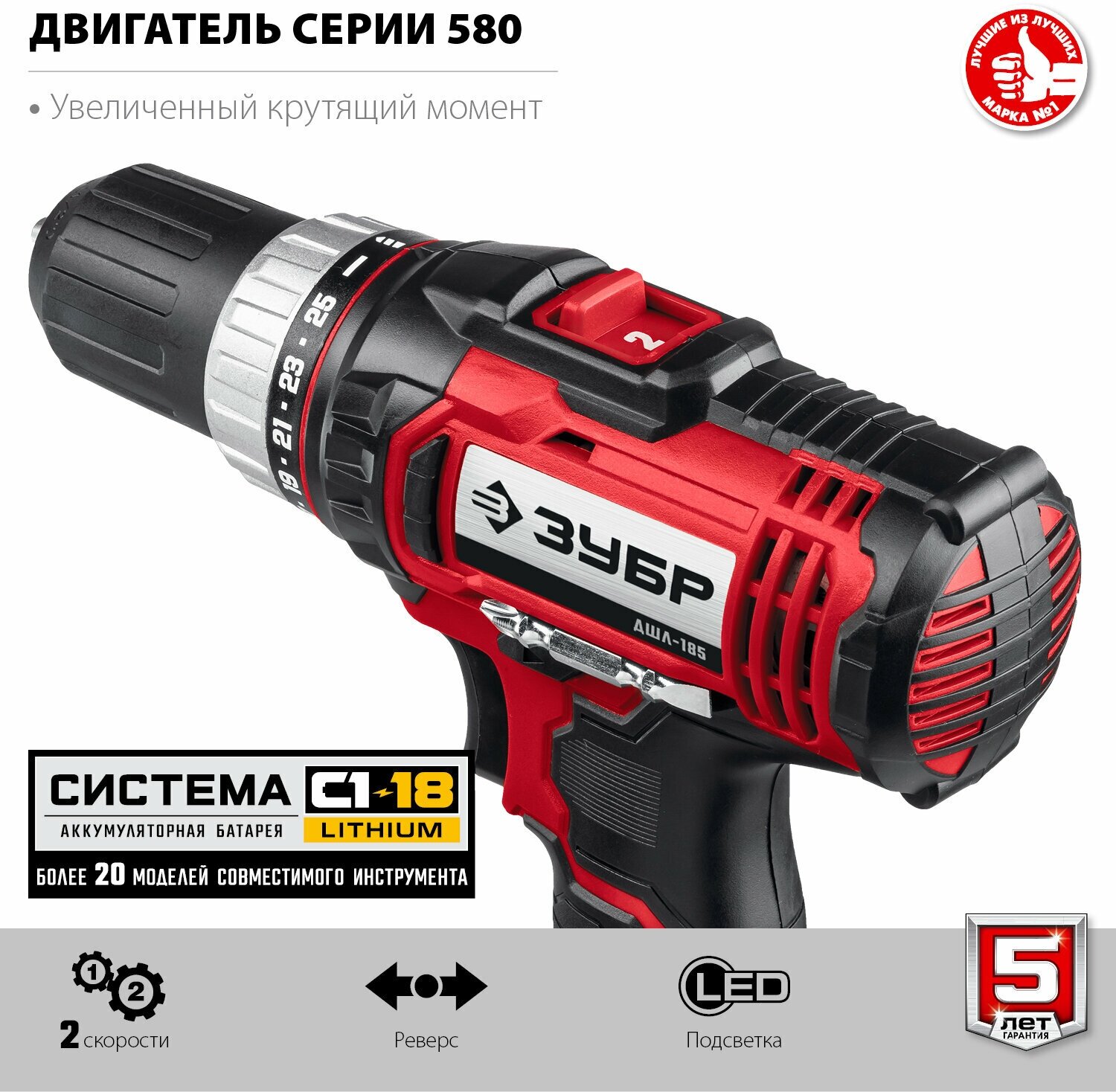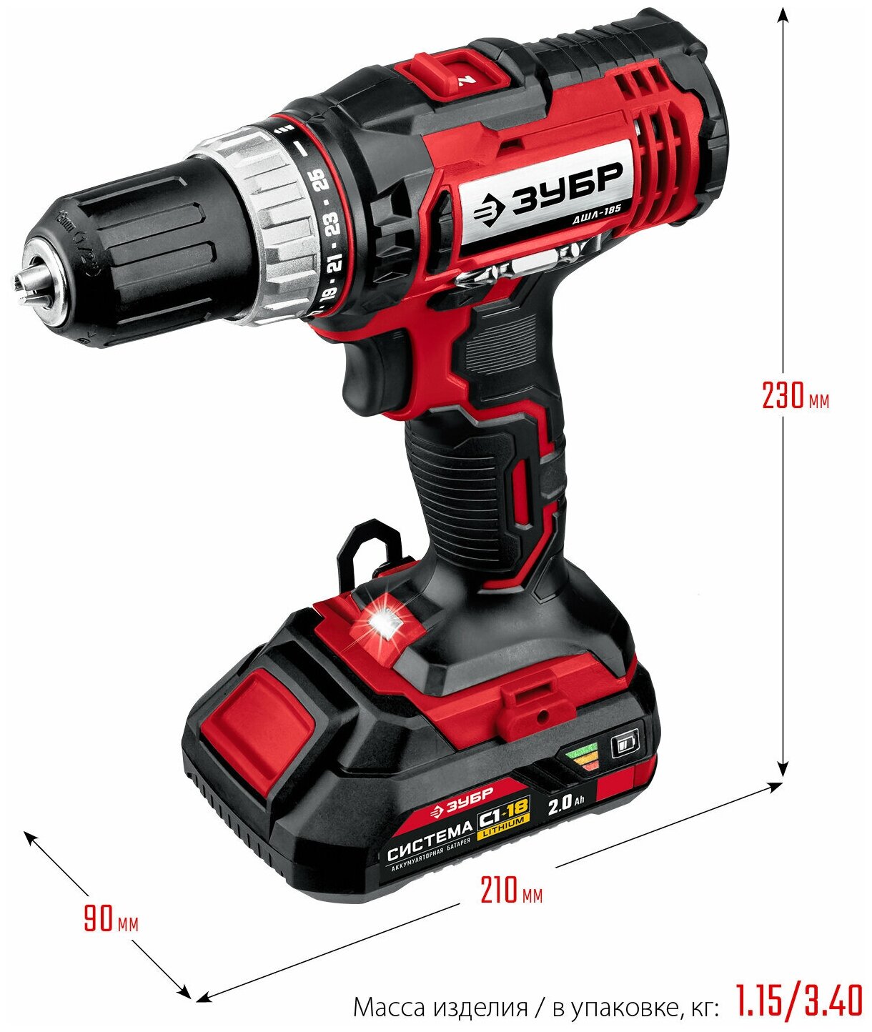 Аккумуляторная дрель-шуруповерт ЗУБР ДШЛ-185-22 (ДШЛ-185-22)