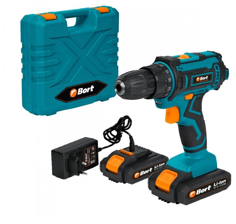 Bort Дрель-шуруповерт Аккумуляторная Bort Bab-21x2li-fdk (2x1,5ah) [93415070] 21 В, 1.5 Ач, Li-lon