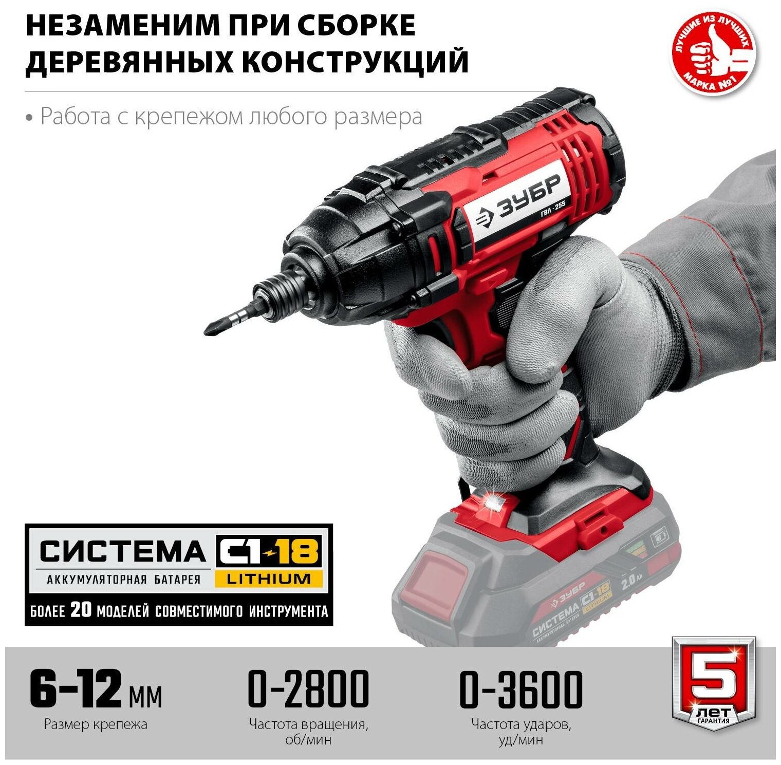 Винтоверт ударный Зубр ГВЛ-255 18В, без АКБ