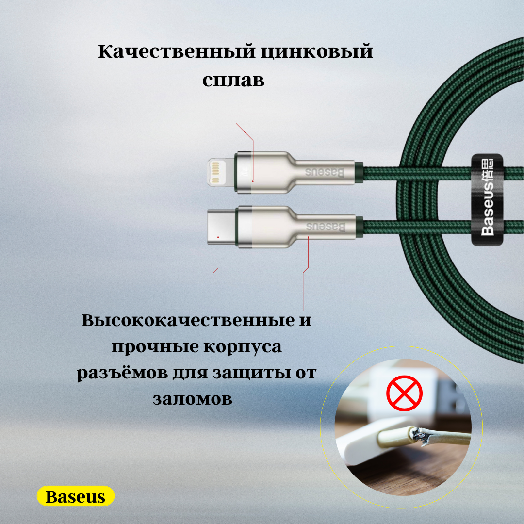 СохранитьКабель Baseus Type-C - Lightning Cafule Series Metal 20W (CATLJK-A06) 1 м., зеленый интересное: