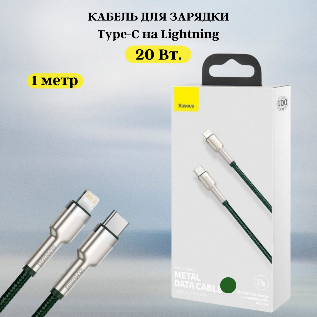 Купить Кабель Baseus Type-C - Lightning Cafule Series Metal 20W (CATLJK-A06) 1 м., зеленый