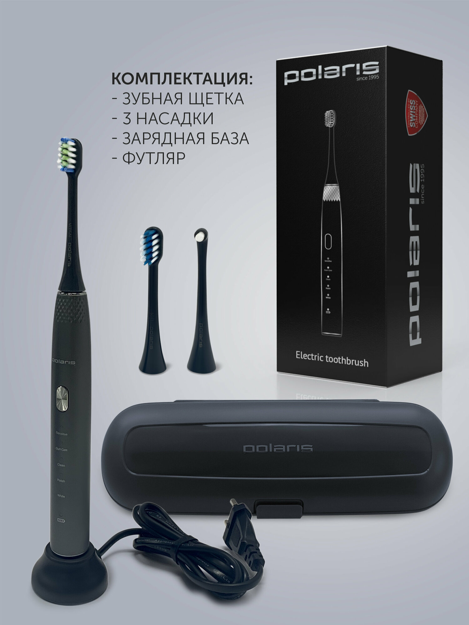 Электрическая зубная щетка Polaris PETB 0701 TC, с дополнительными насадками, графитовая