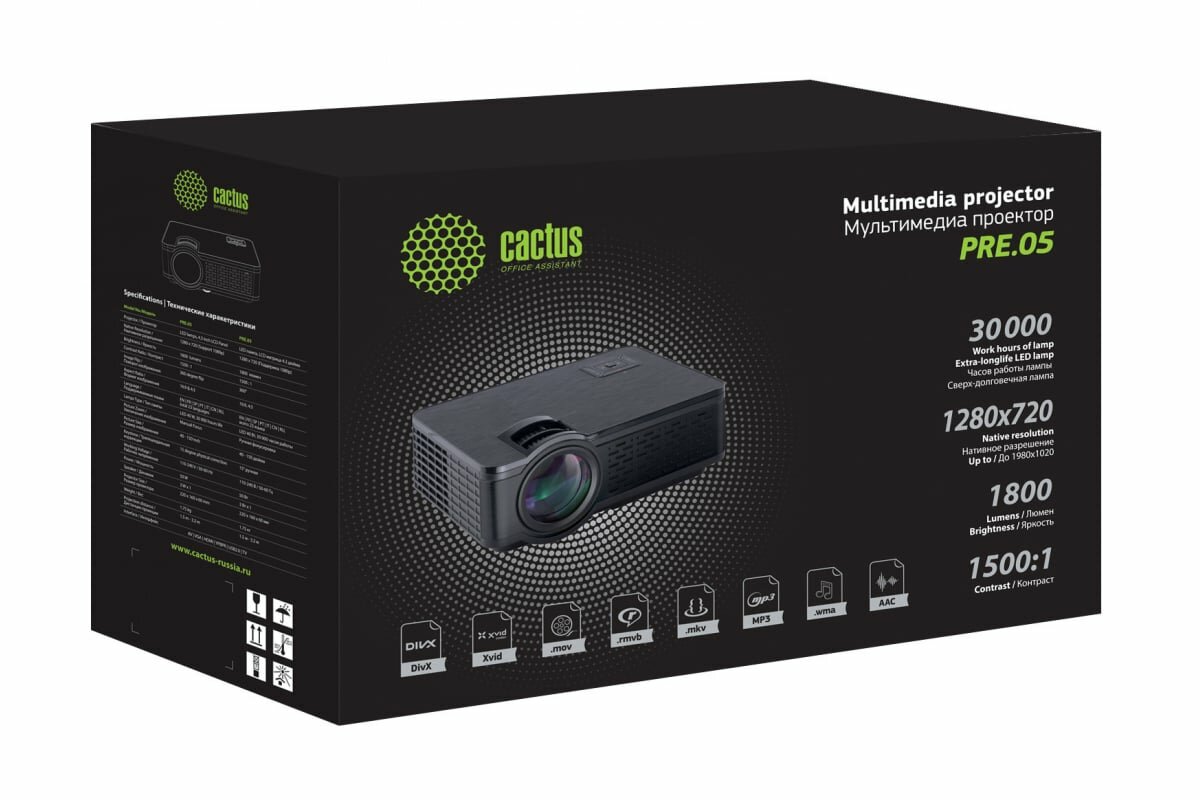 Проектор Cactus CS-PRE.05B.WXGA-W 1280x720 1800 lm 1500:1 черный