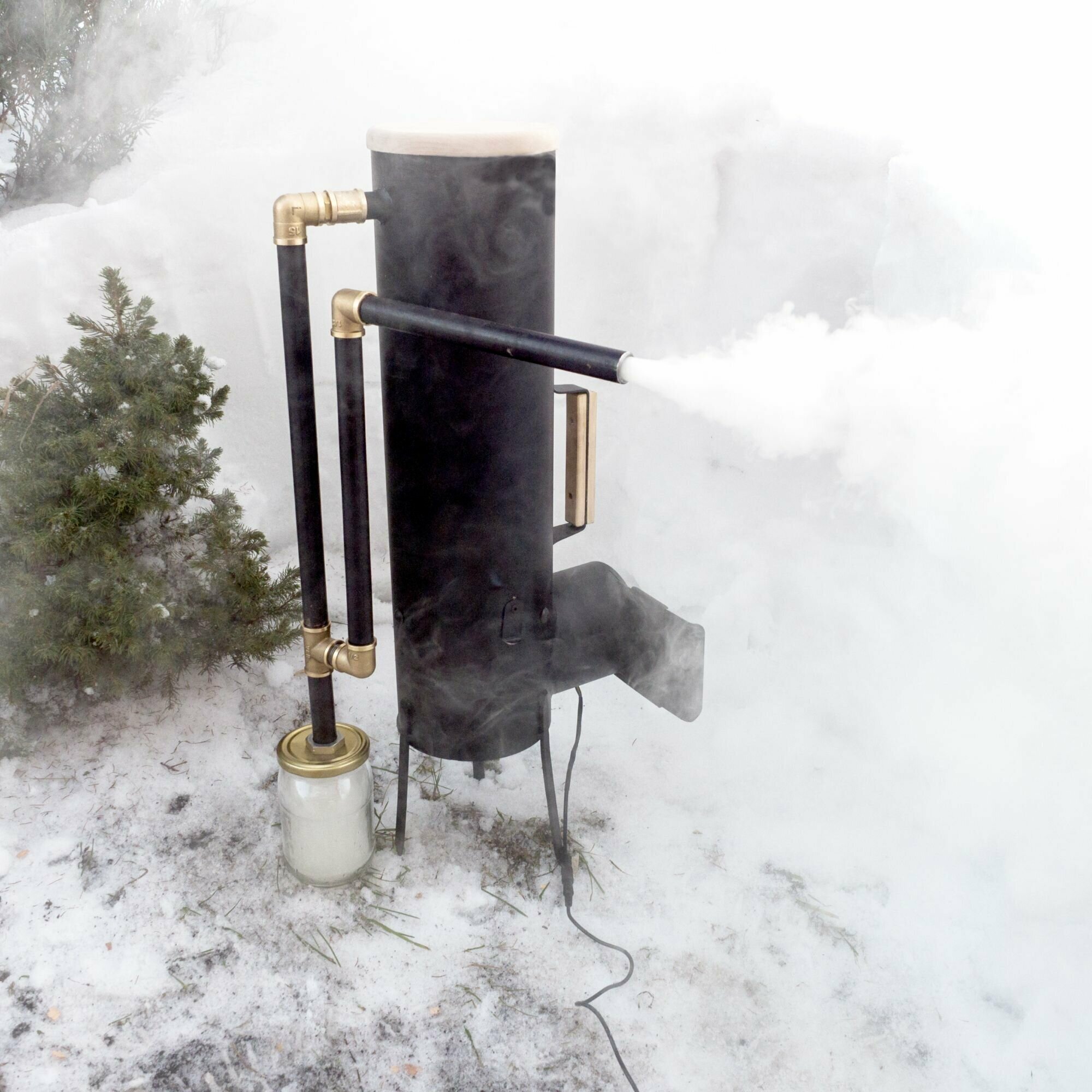 | Минусы: | Не проварен шов, отверстие размером со спичечную головку, из которой при работе идёт дым. Крышка для сбора конденсата была вся измятая. Вместо инструкции к дымогенератору, почему то инструкция к буржуйке. |