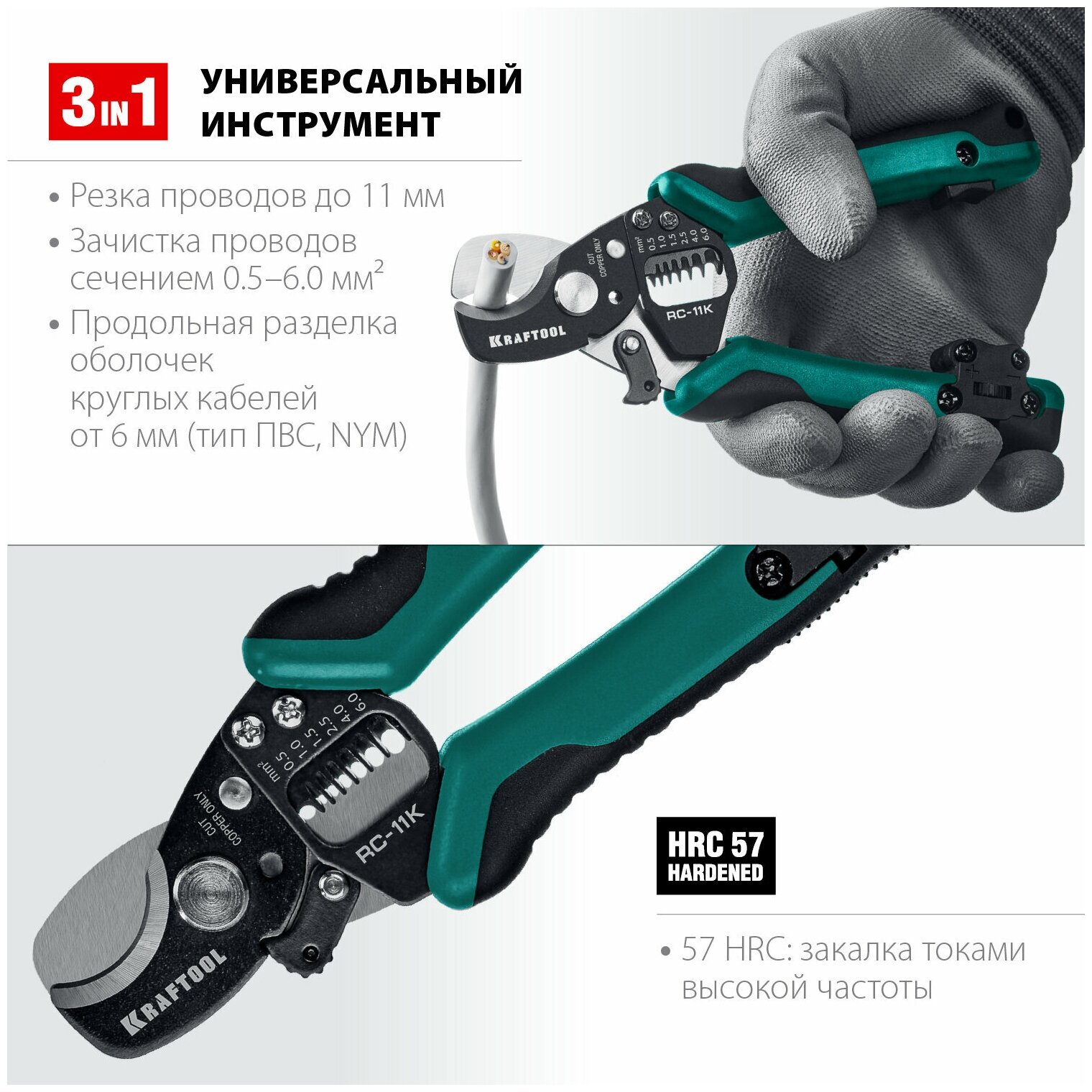 KRAFTOOL RC-11 K, 3 в 1, кабельные ножницы (22696-3)