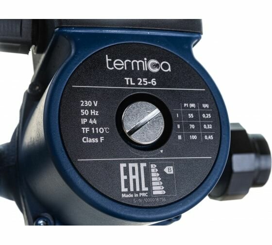 Насос циркуляционный Termica TL 25-6 130 (0,10 кВт, PN10, Hmax 6 м, Qmax 4,7 м³/ч, 1х230В)