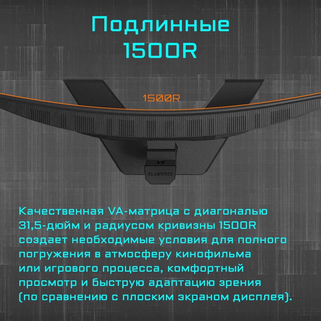 31.5" Монитор GIGABYTE M32QC, 2560x1440, 165 Гц, *VA, черный