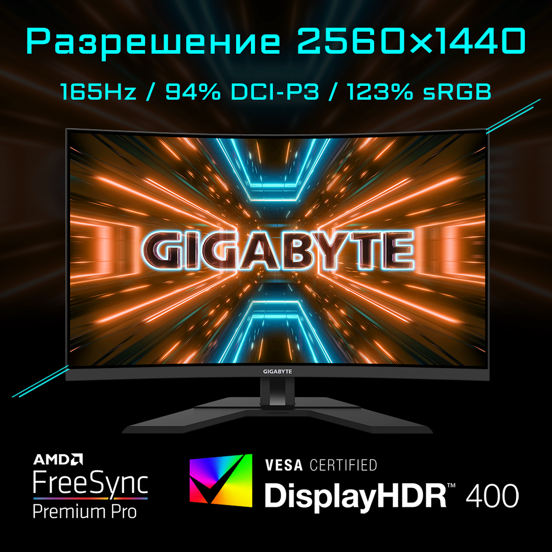 Монитор Gigabyte 31.5" M32QC VA 2560x1440 165Hz FreeSync 350cd/m2 16:9