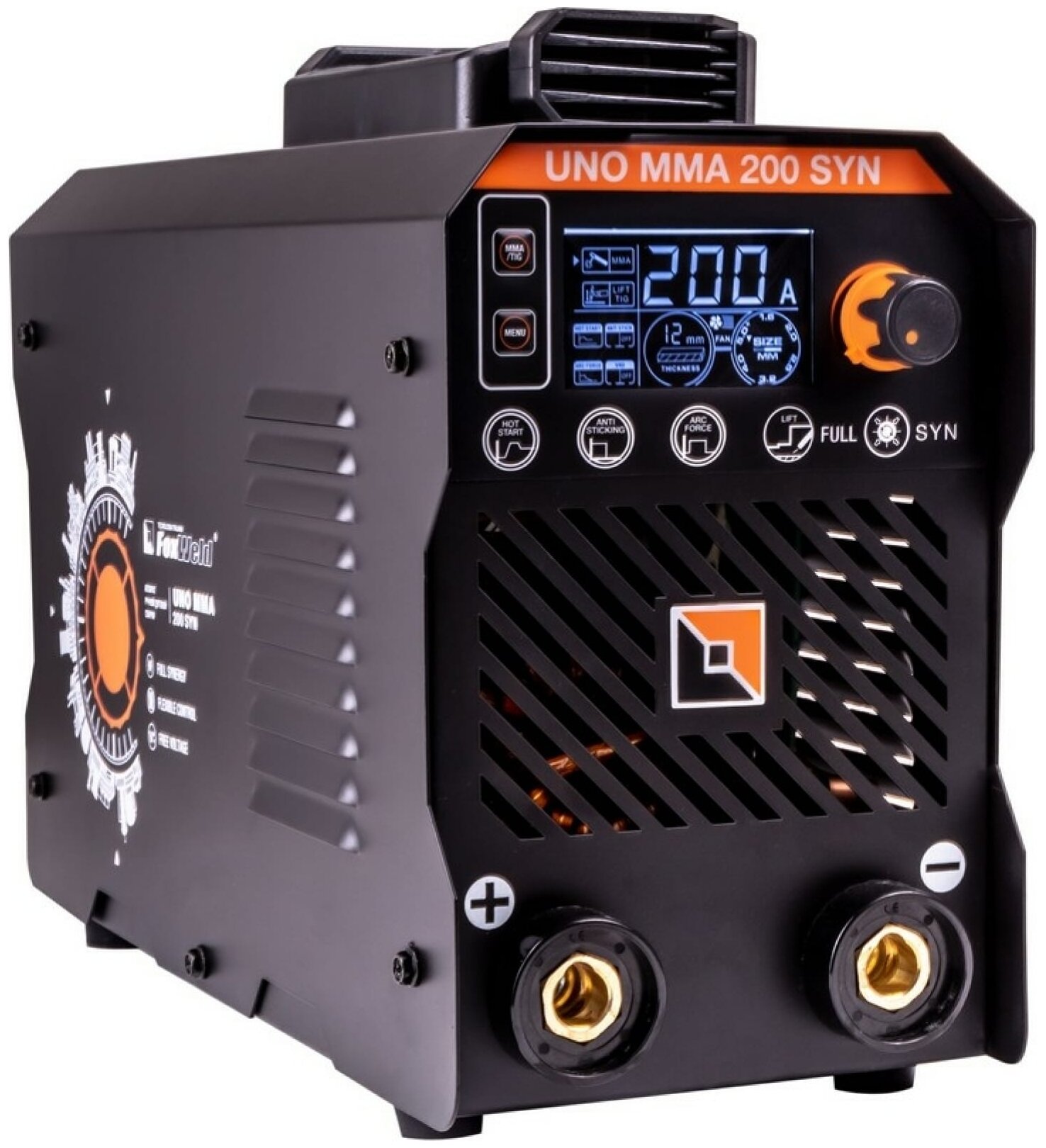 Foxweld Сварочный аппарат UNO MMA 200 SYN ручная дуговая сварка, ПВ 100%, VRD, горячий старт, форсаж дуги, антизалипание электрода