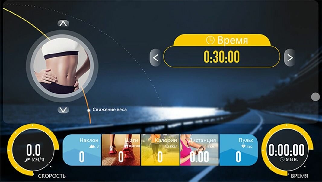 | Показания дисплея | пройденное расстояние / расход калорий / текущая скорость / угол наклона / пульс |