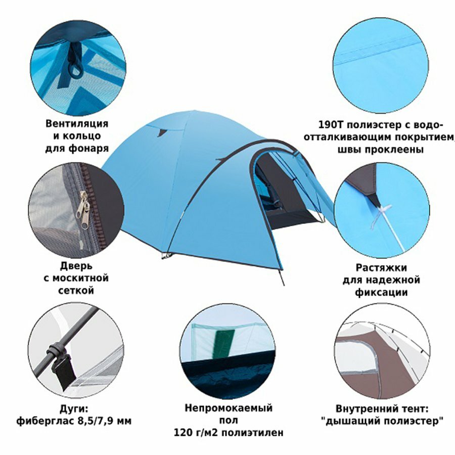 Палатка кемпинговая трёхместная Green Glade Nida 3, голубой