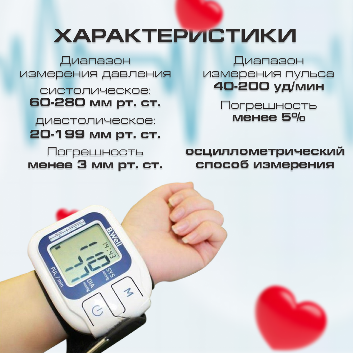 | Погрешность измерения давления | 3 мм рт. ст. |