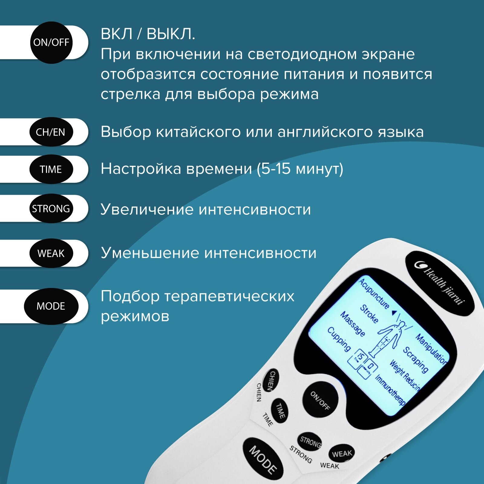 Импульсный миостимулятор Evo Sante массажер для тела. Тренажер для мышц. Миостимулятор для мышц. Оздоровление и физиотерапия, 8 электродов в комплекте. Массажер для всего тела