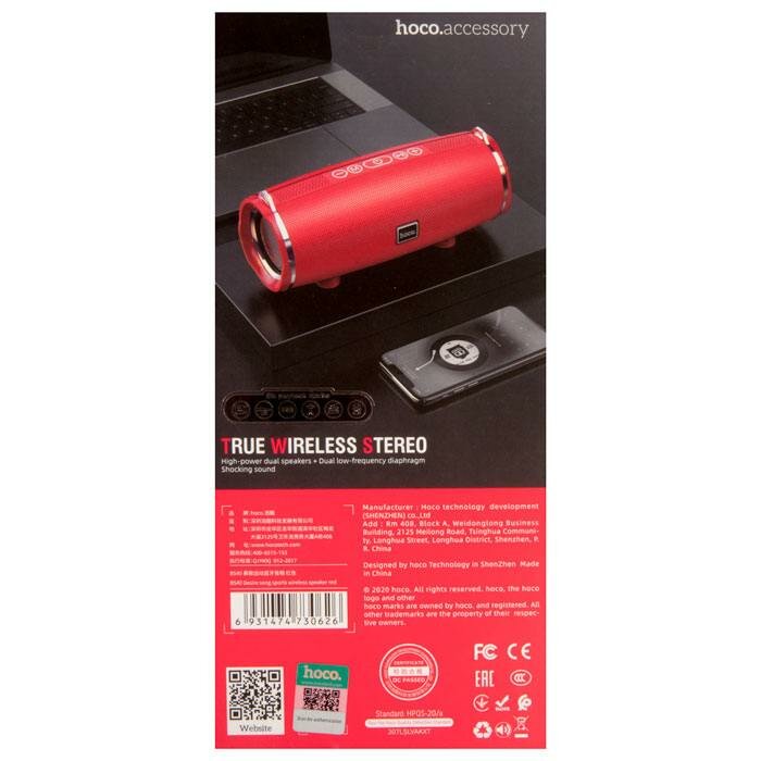 Bluetooth-колонка HOCO BS40 Desire Song 2400mAh, 7 Вт*2 + 2, красный
