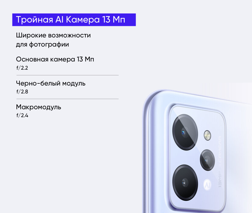| Комплектация | Realme C31, зарядное устройство, кабель micro USB, скрепка для извлечения SIM-карты, документация |