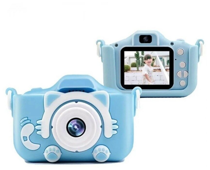 Детский цифровой фотоаппарат Fun Camera Kitty, голубая кошечка с селфи-камерой и играми интересное:
