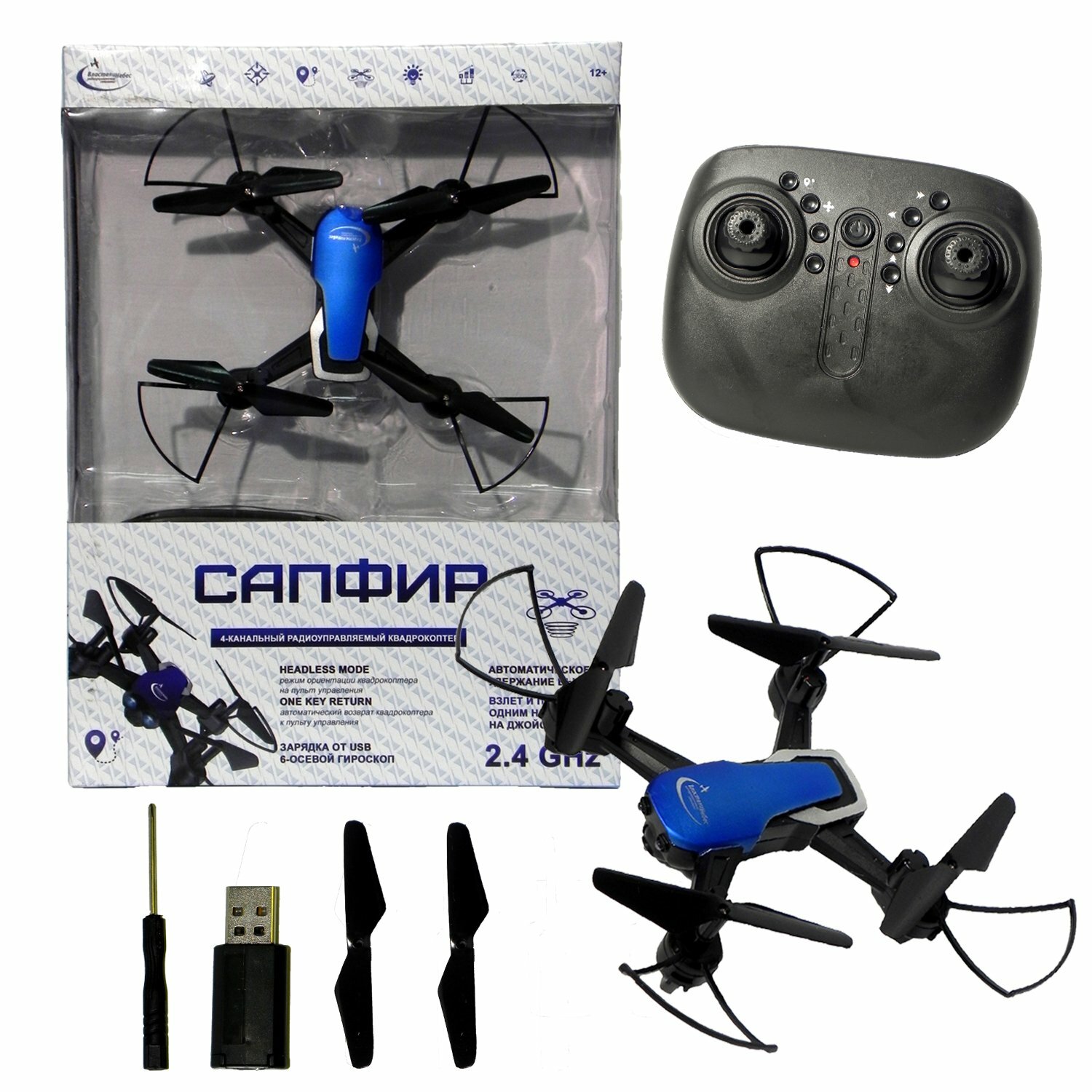 | Особенности | защита винтов / пульт управления в комплекте |