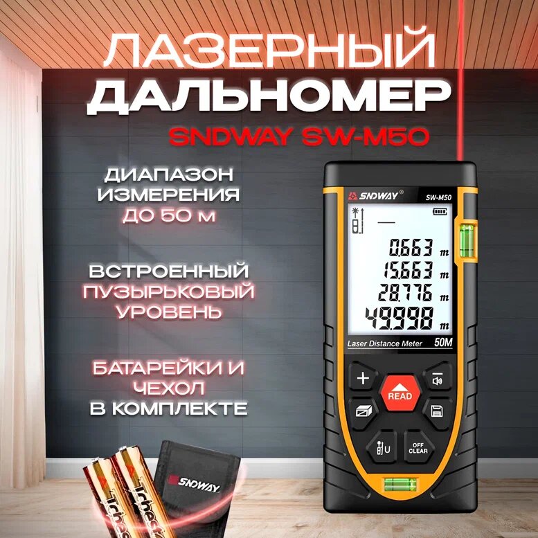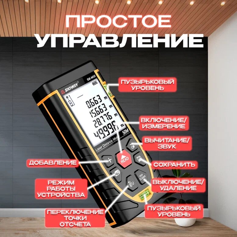 Лазерный дальномер SNDWAY SW-M50 50 м интересное: