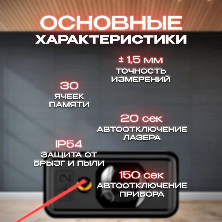 | Плюсы: | точность измерения +-2мм. на 10 метрах. |