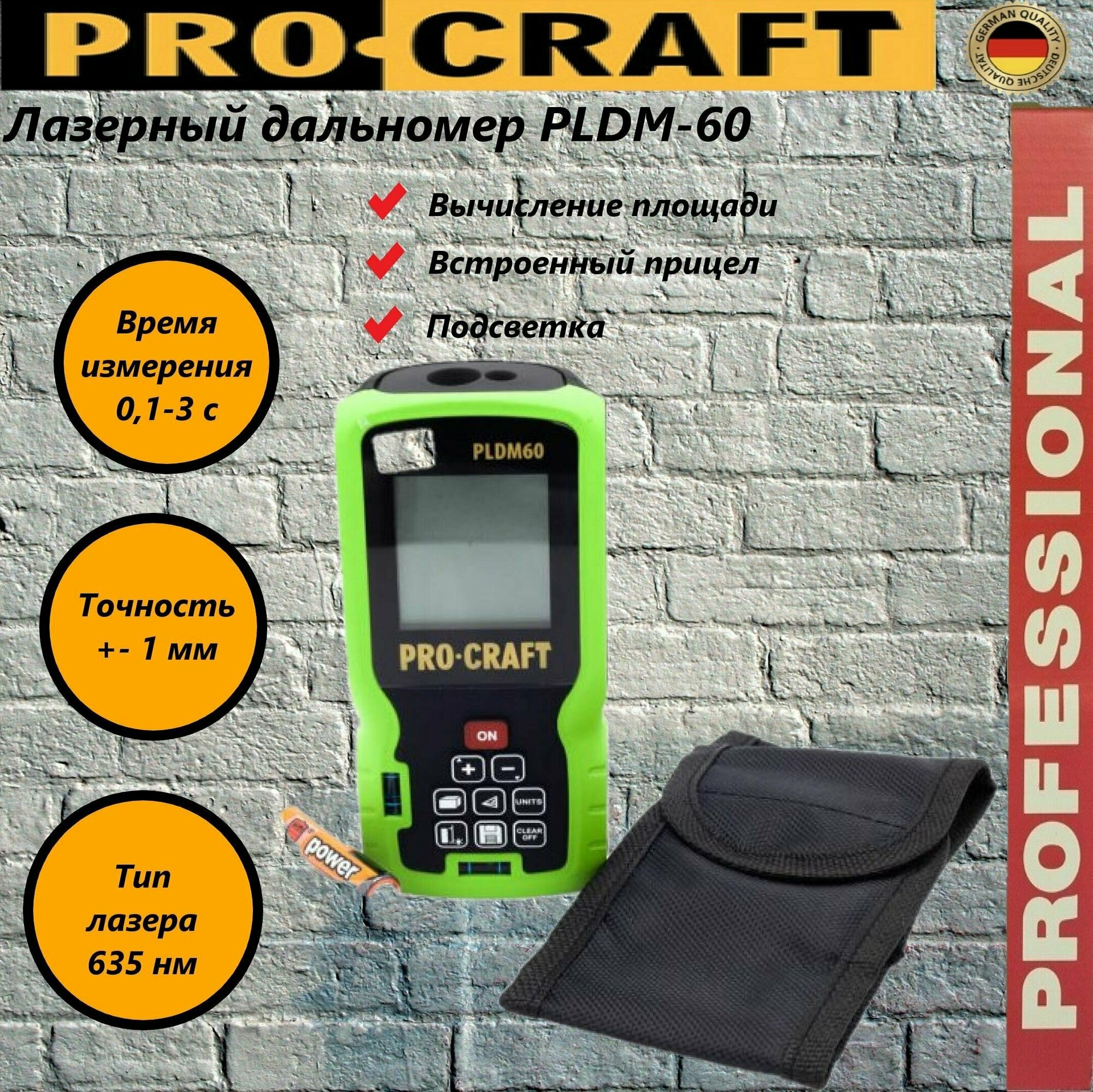 Дальномер лазерный PROCRAFT PLDM60, точность +/- 1мм, диапазон измерения:0.03 - 60, Единица измерения: м / в / фут