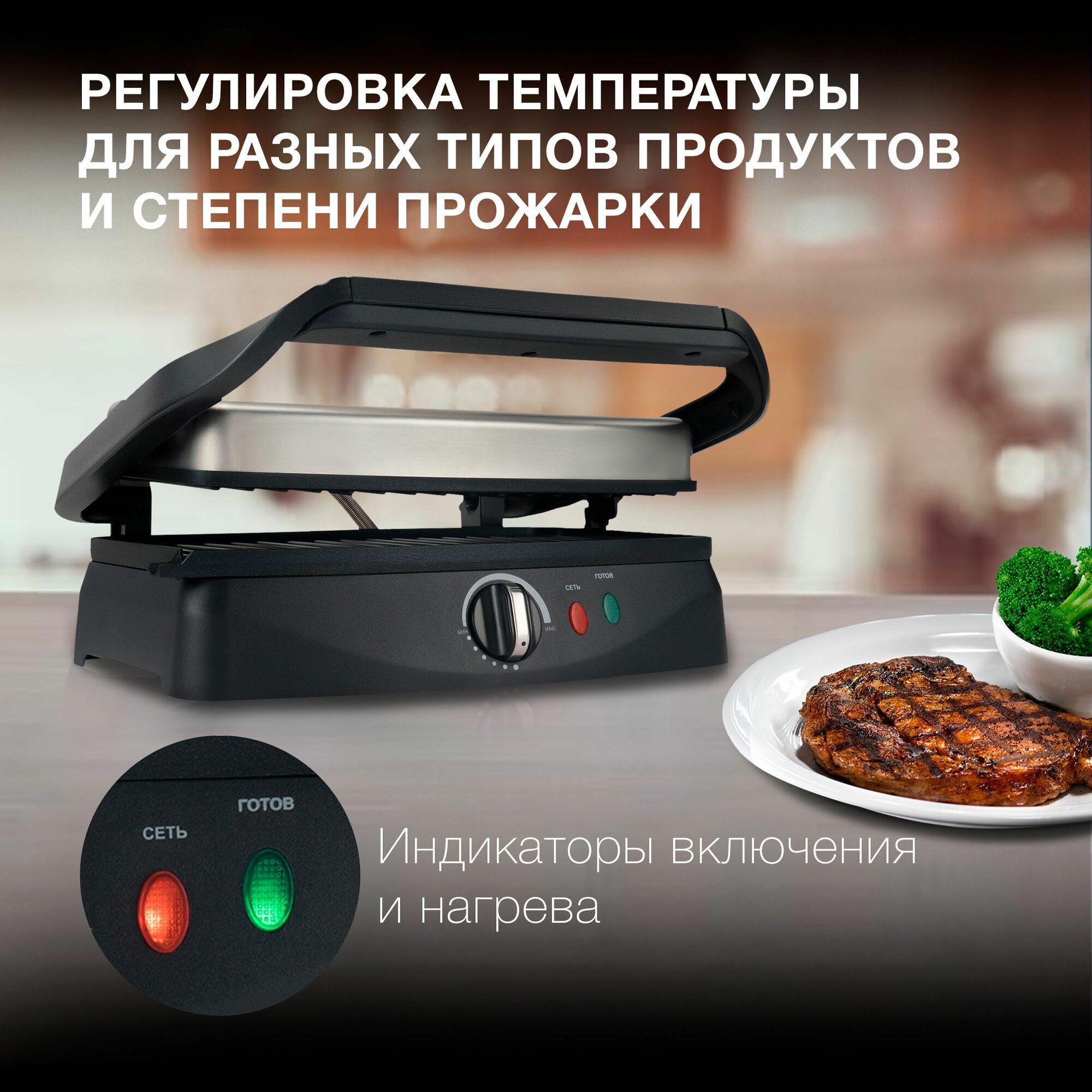 Электрогриль Hyundai HYG-2073, серебристый и черный интересное: