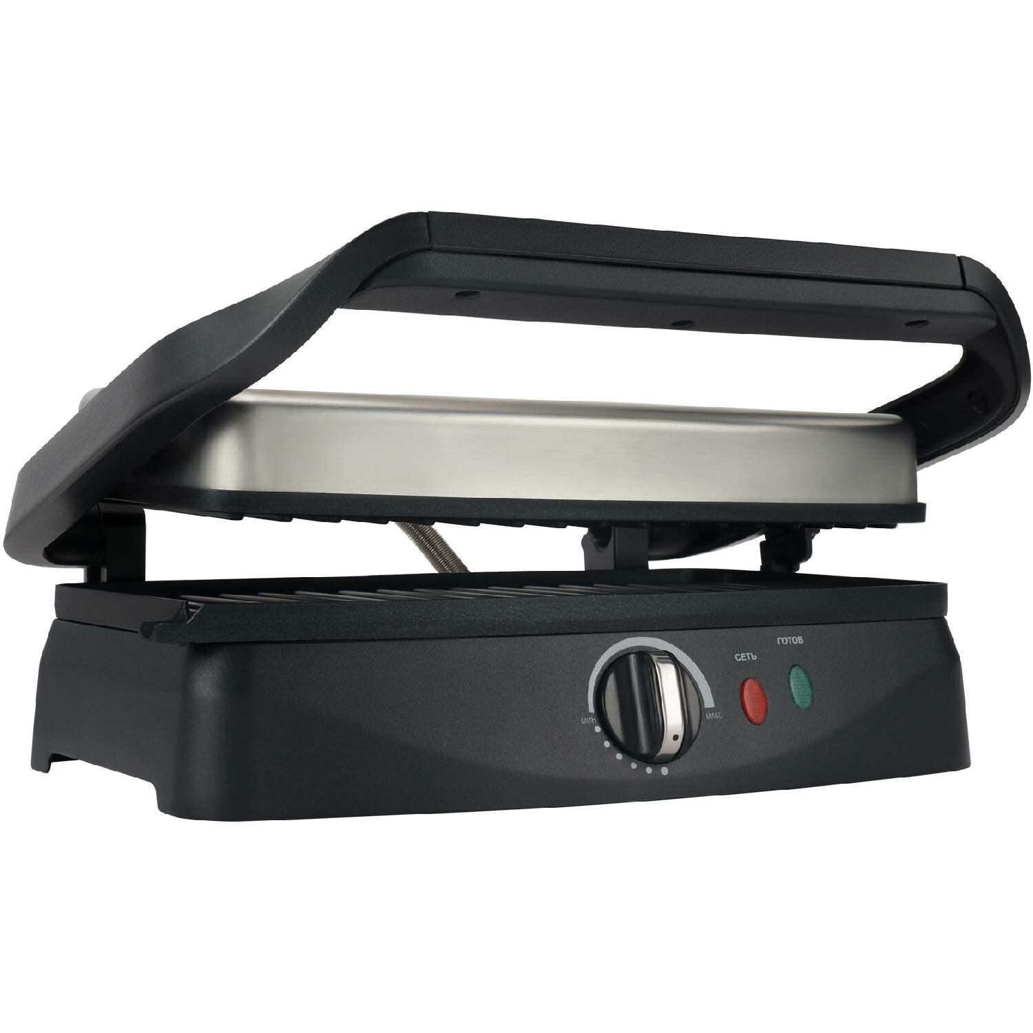 | Плюсы: | Мощный гриль с регулировкой температуры и антипригарным покрытием. Лоток сбора жира. Индикаторы. |
