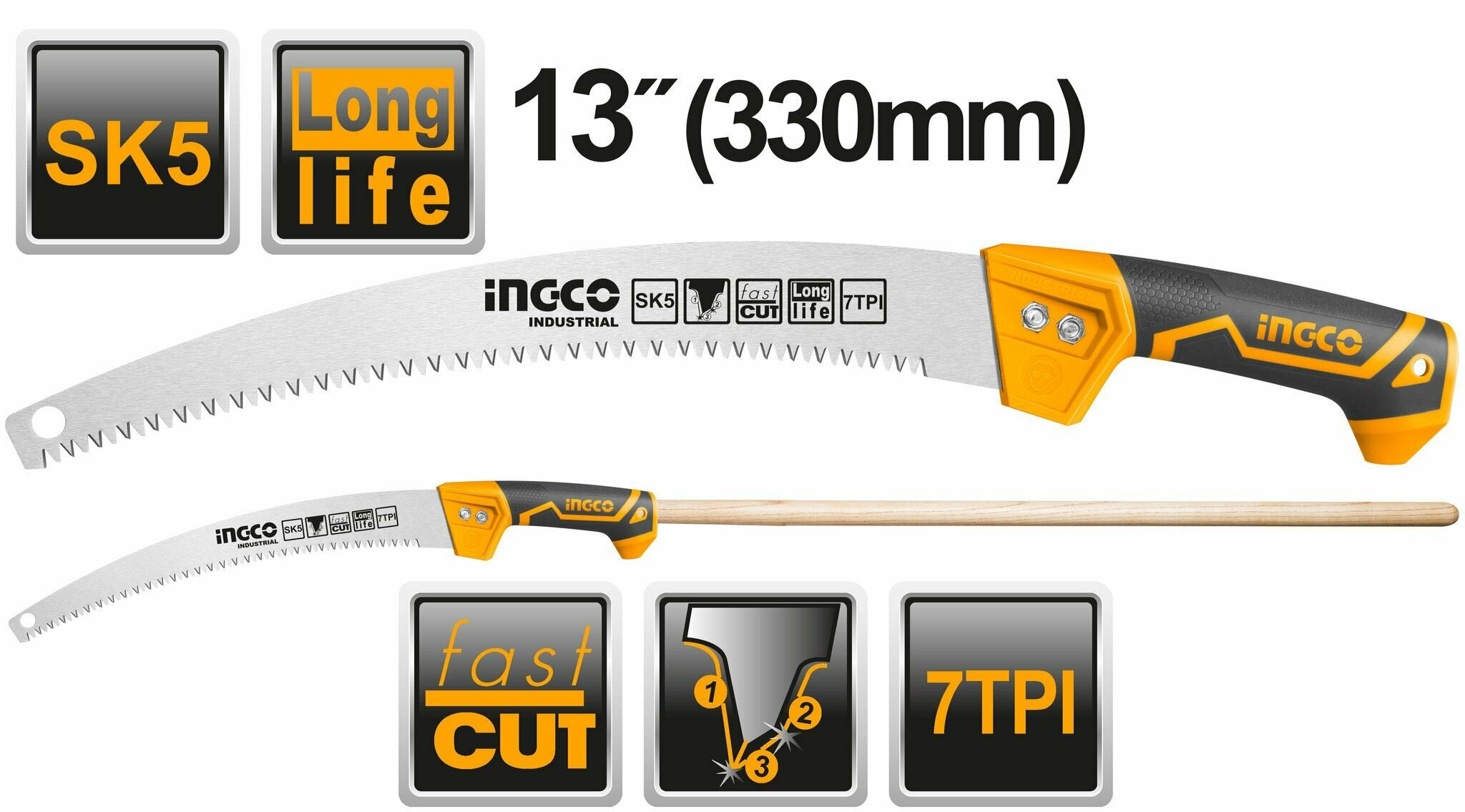 Садовая пила с изогнутым полотном INGCO HPS3308 INDUSTRIAL 330 мм